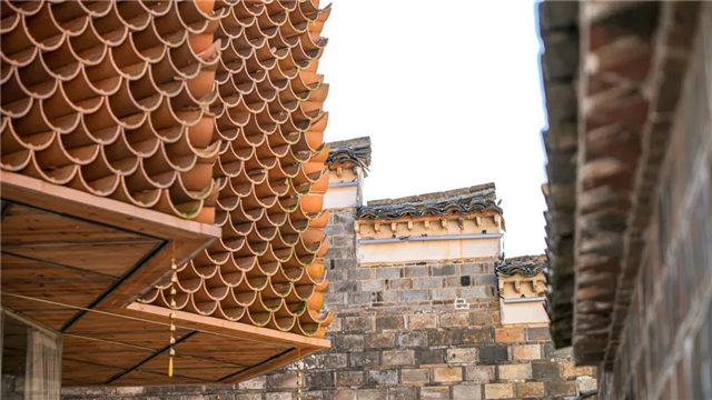 此外,還將「瓦」這一傳統(tǒng)建筑元素,串聯(lián)了整個村落:如用瓦作的漏窗、瓦疊的屋頂、瓦鋪的小路,似乎都在和老房子的屋頂相呼應。