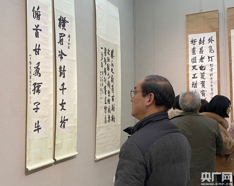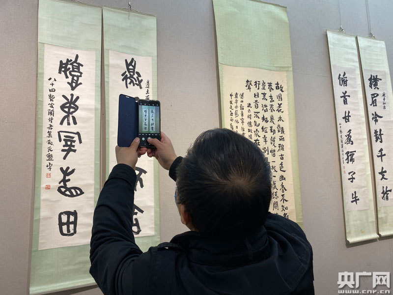 市民駐足在陶博吾作品前仔細品味(央廣網記者 王一凡 攝)