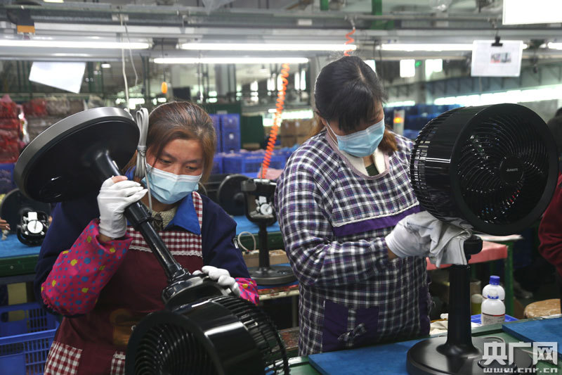 3月16日,艾美特電器(九江)有限公司生產(chǎn)車間內(nèi),工人們正在緊張生產(chǎn)