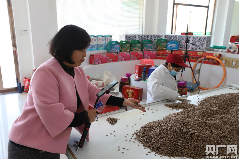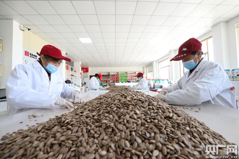 工作人員正在分揀瓜蔞子(央廣網發 通訊員袁昕 攝)
