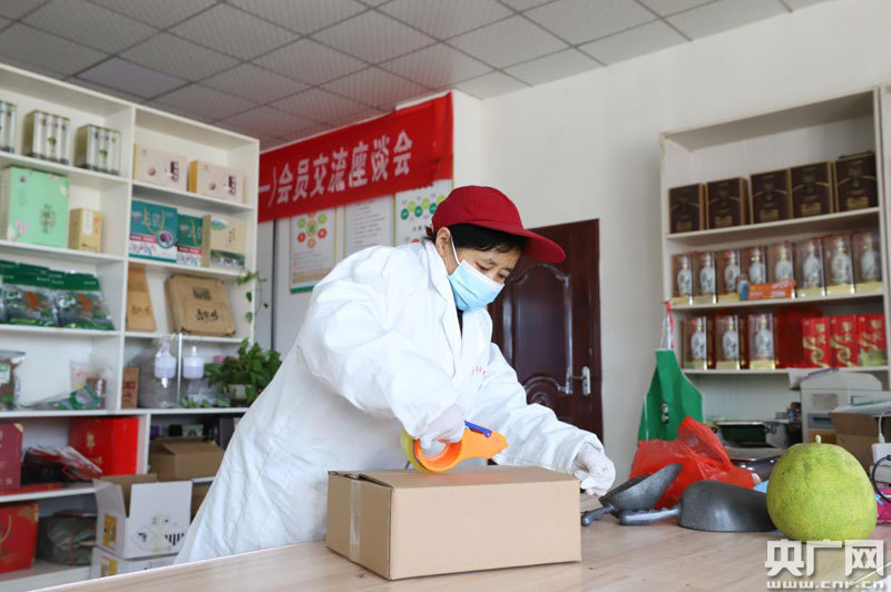 工作人員正在打包發貨(央廣網發 通訊員袁昕 攝)