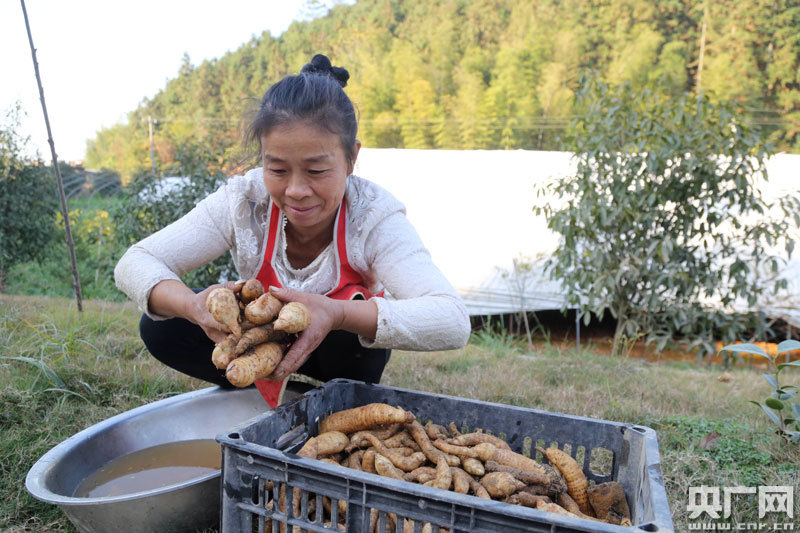 農戶在清洗剛采收的天麻(央廣網發 通訊員供圖)