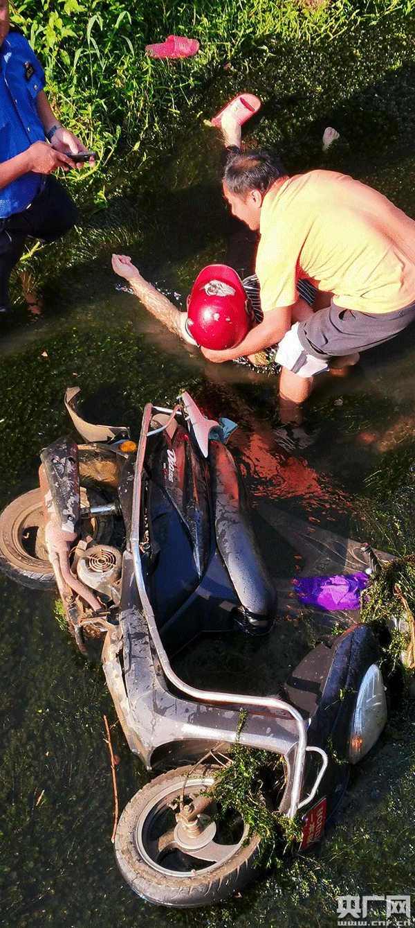 7月17日早上7點30分許,江西省萬安縣澗田鄉社公背居民謝橋香騎著摩托車去圩鎮菜市場買菜,在一個轉彎處,不小心騎著摩托車沖進路邊的河道里。這個河道的河堤有4米多高,謝橋香連人帶車一頭扎進了河道的淤泥里,因額頭碰上了河里的鵝卵石,謝橋香瞬間便暈了過去。這時,恰巧澗田鄉居委會城管中隊長林路平上班時經過,看到了這驚險的一幕,于是就邊跑邊大聲喊道:“快來救人,快來救人”,隨即連鞋子都沒脫就跳到河道中去。河道附近居民曾憲正聽到林路平的喊聲后,也跳入河道中一起救人。為了防止謝橋香因暈倒而被河水窒息,曾憲正首先把謝橋香的頭抱起并保持露出水面,林路平則用手機緊急聯系城管隊員前來支援。由于河堤有4米多高,僅憑林路平和曾憲正兩人的力量并不能把謝橋香救上岸,于是他們一邊大聲呼救,一邊焦急地等待救援人員。好幾個附近的居民聽到呼救聲,也緊急下河開展聯合施救,在眾人的幫助下,幾分鐘后,謝橋香被順利地抬上了岸,這時候,前來增援的澗田鄉居委會城管隊員也開著皮卡車過來了,大家便合力將謝橋香抬上皮卡車,送到了澗田鄉衛生院急診室緊急施救。幸虧搶救及時,謝橋香已脫離了生命危險。