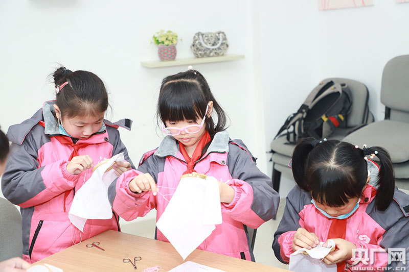 來自東湖小學的孩子們前來體驗非遺手工課程 江南貢繡的刺繡技法(央廣網發 受訪者供圖)