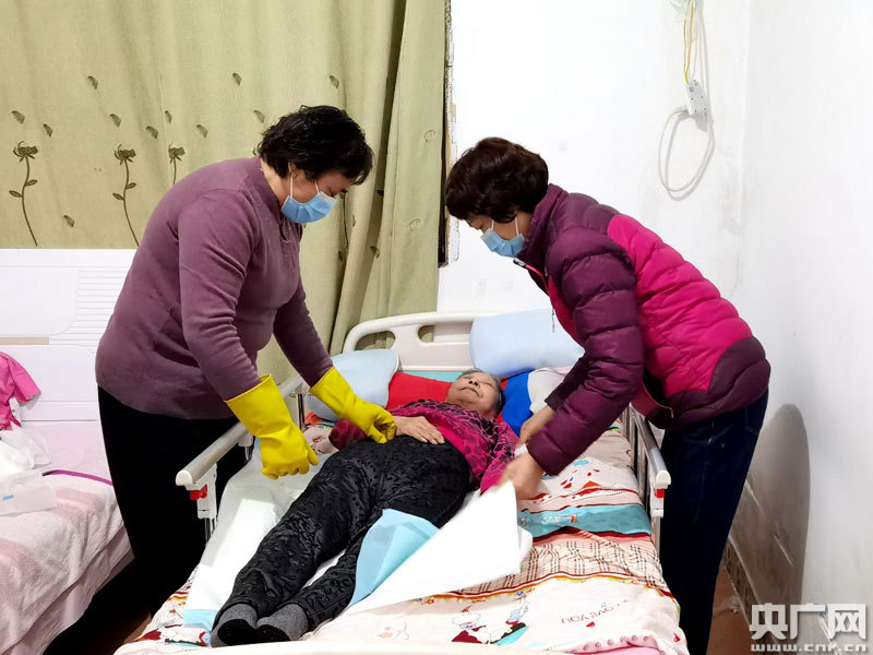 袁小萍和妹妹一起為母親翻身(央廣網(wǎng)發(fā) 通訊員供圖)