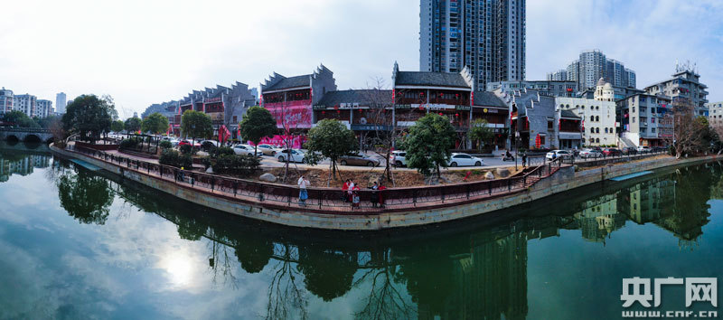 游人在改造后的社區河邊旅游打卡(央廣網發 通訊員李軍 攝)