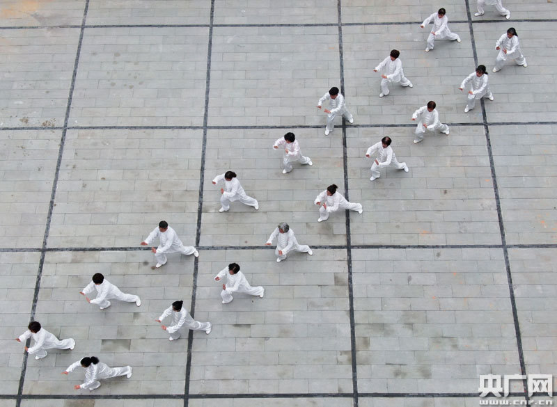 該社區太極拳愛好者們在新建的廣場上運動(央廣網發 通訊員李軍 攝)