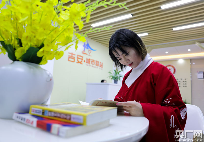 居民在該社區城市驛站看書休閑(央廣網發 通訊員李軍 攝)