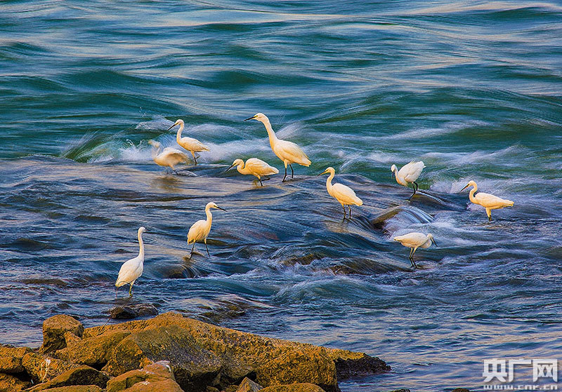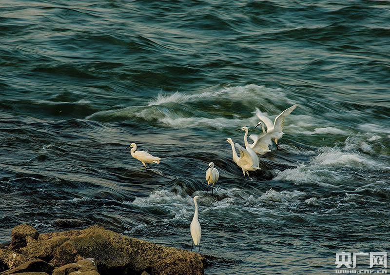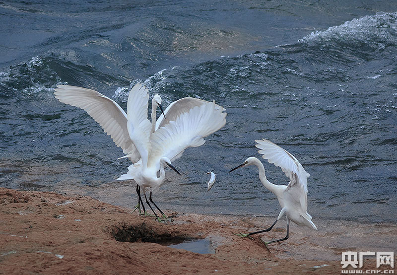 灘頭戲水白鷺(央廣網發 通訊員廖紹昆 攝)