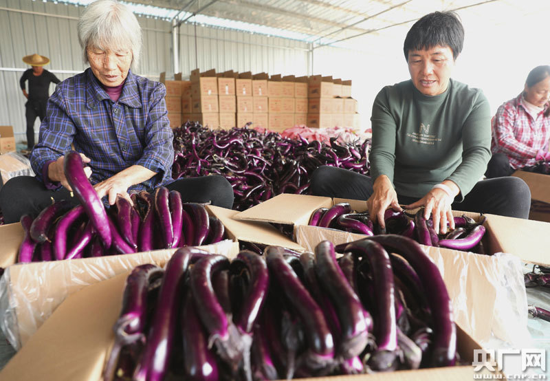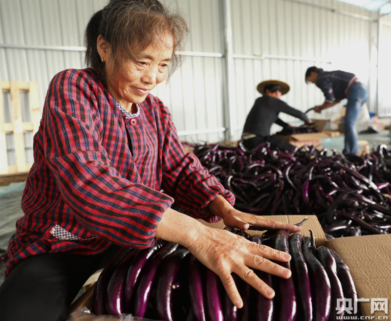 把剛采摘來的茄子分揀裝箱(央廣網發 通訊員供圖)