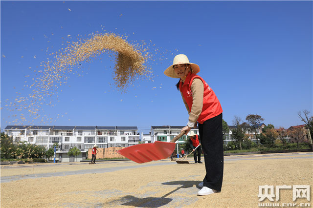 金秋時節,吉州區晚稻喜獲豐收,當地農民搶抓有利天氣忙著做好秋收秋曬,各地呈現出一派豐收的景象。(李軍攝)