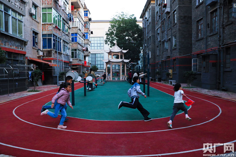 在吉州區塔水橋社區有線電廠小區,居民正在改造好的跑道上休閑運動(央廣網發 通訊員李軍 攝)