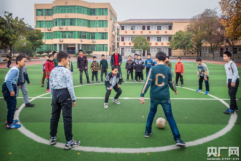 足球社團的學生在老師的指導下學生在進行傳球訓練(央廣網發 通訊員供圖)