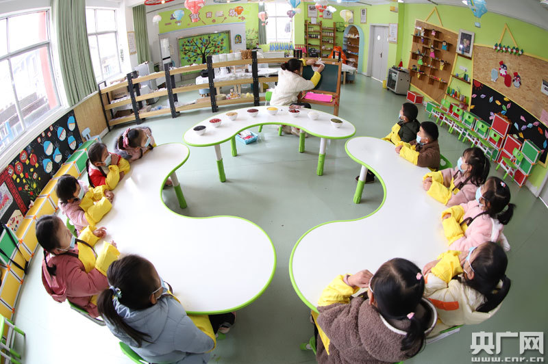 老師指導(dǎo)孩子們認(rèn)識(shí)制作臘八粥的材料(央廣網(wǎng)發(fā) 通訊員供圖)