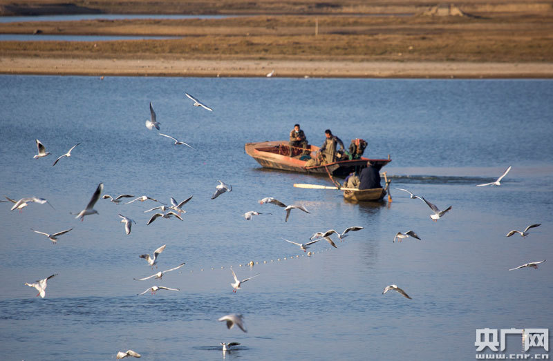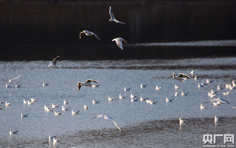 1月19日,江西省九江市都昌縣大沔池湖面上飛翔的鷗鳥(央廣網發 通訊員傅建斌 攝)