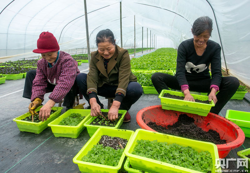 央廣網瑞昌1月21日消息(記者王一凡 通訊員魏東升 張子君)1月21日,江西省瑞昌市高豐鎮高豐村盆栽活體蔬菜大棚內一派繁忙景象,村民正在移栽、搬運蔬菜。