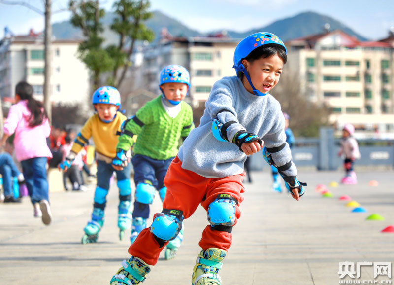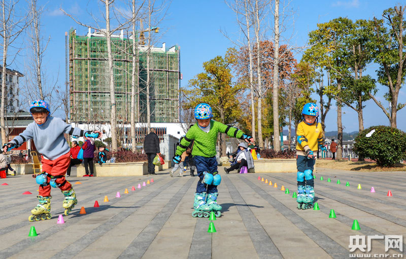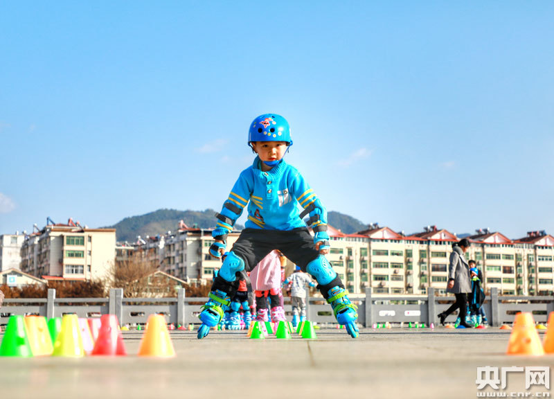 央廣網全南1月29日消息(記者王一凡 通訊員尹其奇)1月28日,在江西省全南縣桃江公園,小學生在冬日暖陽下進行滑輪運動訓練。寒假期間,全南縣的中小學生紛紛通過參加舞蹈、音樂、武術、滑輪等學習培訓活動,豐富假期生活。