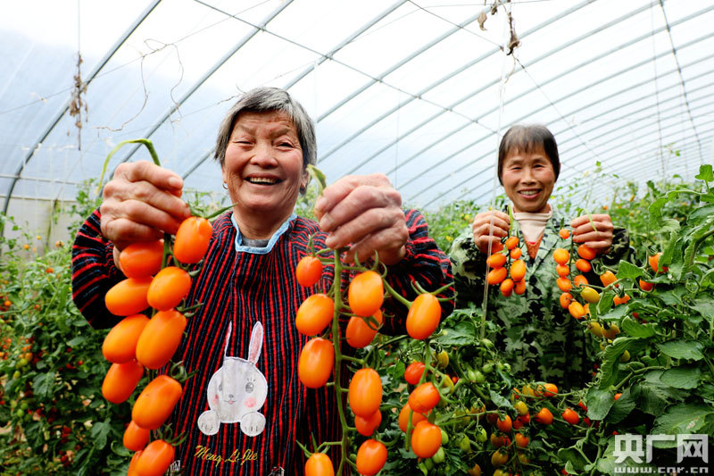 1月27日,在吉安市吉州區樟山鎮赤塘村農業溫室大棚,農戶正在收獲西紅柿。