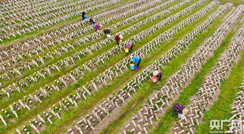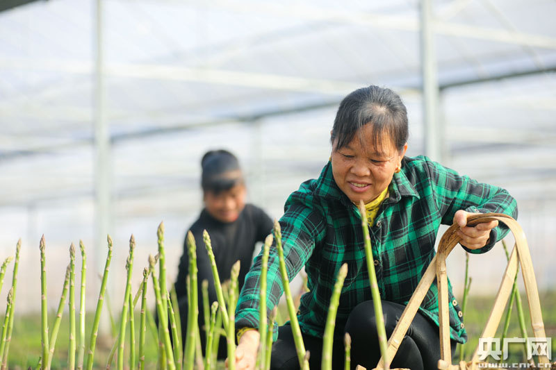 1月29日,吉安市吉州區長塘鎮京創蘆筍基地員工正在采摘蘆筍。
