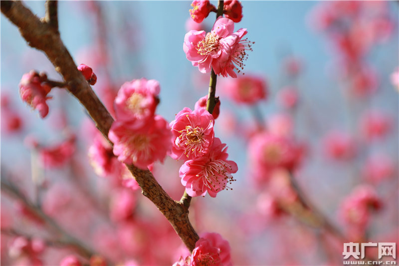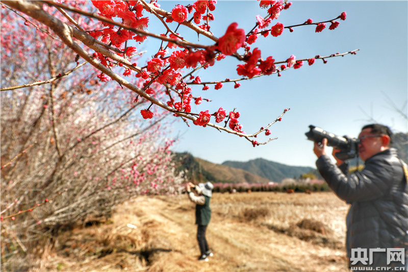 央廣網(wǎng)全南2月1日消息(記者胡斐 通訊員尹其奇)1月31日,游客在江西省全南縣南逕鎮(zhèn)黃云村梅園基地觀賞梅花和拍照留影。連日來,氣溫回升,全南縣南逕鎮(zhèn)黃云村梅園基地的梅花競(jìng)相開放,香氣撲鼻,吸引眾多市民和游人前來賞梅。