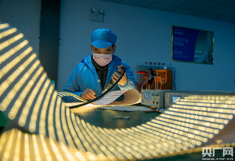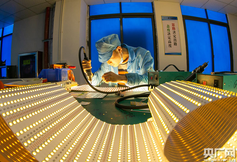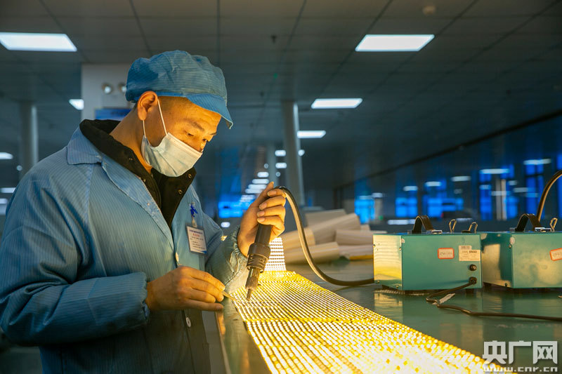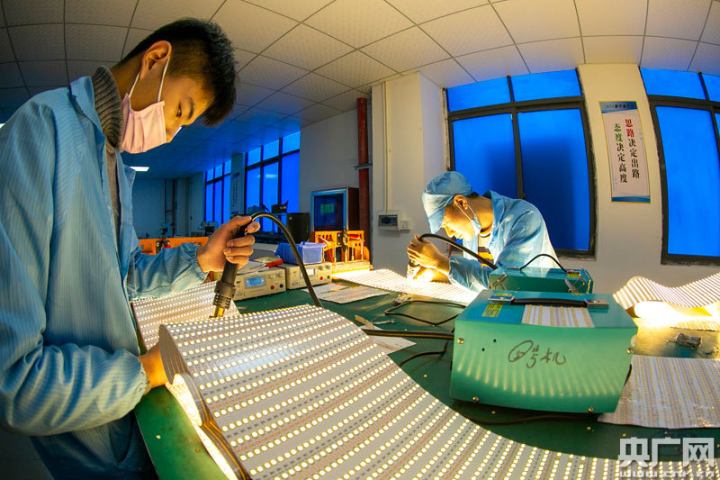 “就地過年”的外地工人們在LED低壓燈帶生產線前趕制海外訂單