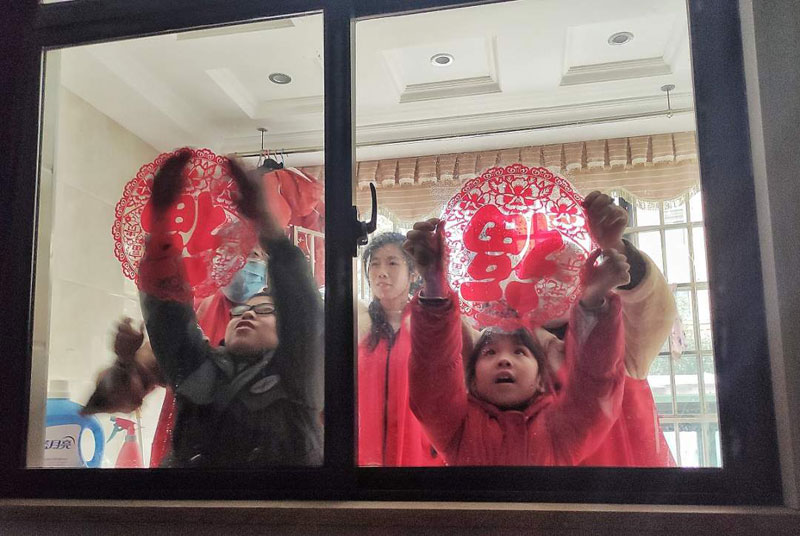 “陳老,我們來陪您過小年了!”聽到敲門聲,76歲的陳柒根趕緊將大家迎了進來。工會“娘家人”來了,志愿者“娘家人”來了,社區(qū)“娘家人”也來了。大家?guī)е住⒂汀⒓t圍巾、春聯(lián)、防疫物資等年貨來到了陳老家中。貼窗花、貼春聯(lián)、端上年夜飯……頓時,老人家中熱鬧了起來,充滿新春的喜慶味。