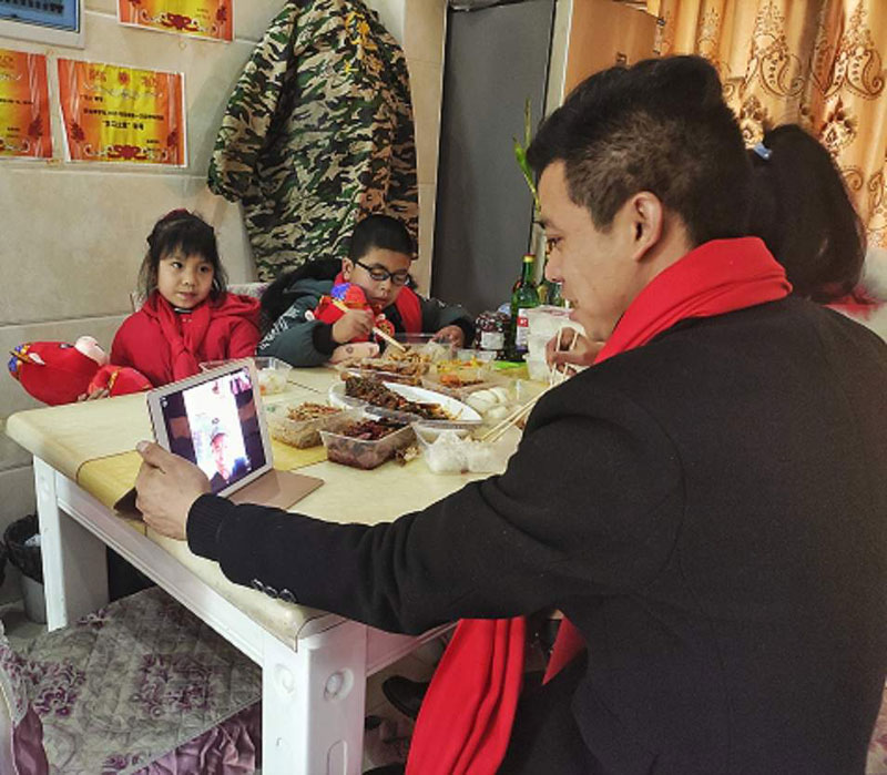 縱使相隔千萬里,親情、年味不缺席。尹文松是渝洲大橋一家汽車服務店的員工,來新余工作已有12年。過去,每年春節(jié)回吉安過年是尹文松一家不變的傳統(tǒng)。尹文松告訴記者,首次在新余過年并沒有感到不習慣。“工會想得太周到了,這個年,相信我們過得跟老家一樣有味道。”從社區(qū)工作人員手里接過保溫袋裝著的年夜飯,尹文松笑容燦爛地說。據(jù)了解,尹文松的父母在浙江務工,根據(jù)疫情防控的需要,今年春節(jié)也選擇“就地過年”。小年夜里,尹文松一家一邊吃著年夜飯,一邊同700公里之外的父母視頻連線,祖孫三代在云端上團聚。