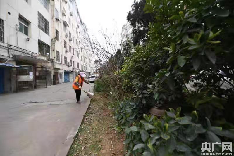 1月10日,新余市渝水區廣場錦苑小區,保潔人員在打掃衛生。(央廣網發 通訊員供圖)