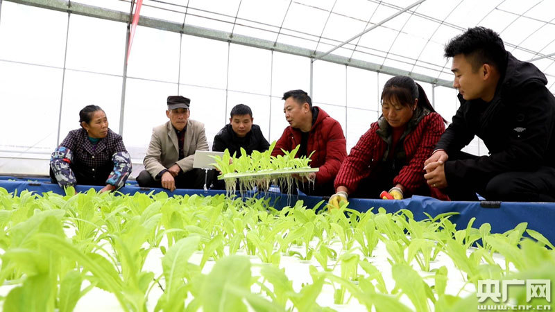 農學博士郭棣賢(右3)向農戶講解水培蔬菜種養的注意事項(央廣網發 通訊員供圖)
