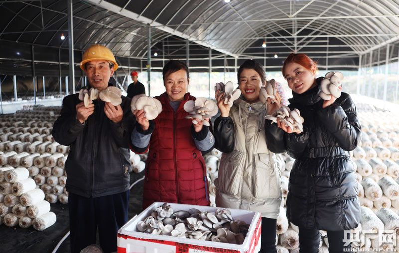 蘑菇致富車間工人在展示自產的蘑菇(央廣網發 通訊員供圖)