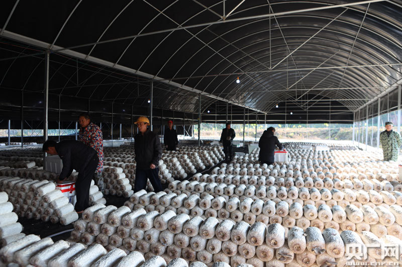 蘑菇扶貧車間里采摘忙(央廣網發 通訊員供圖)