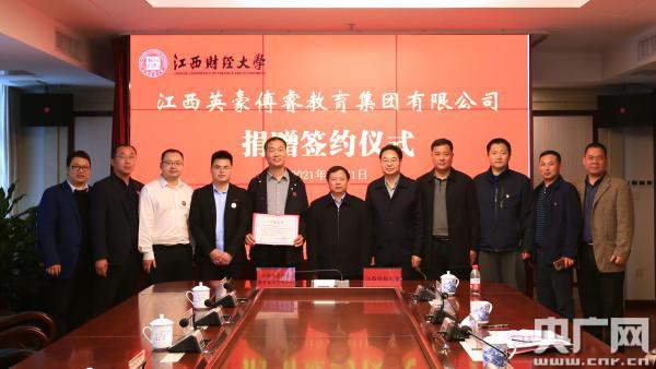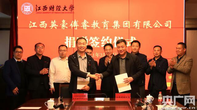 央廣網南昌4月2日消息(記者鄧玉玲)3月31日,江西英豪傅睿教育集團有限公司在江西財經大學設立“英豪傅睿獎教金”捐贈儀式隆重舉行。江西財大副校長袁雄,江西英豪傅睿教育集團有限公司董事長、該校2011屆物流管理專業校友徐根柱等出席簽約儀式。