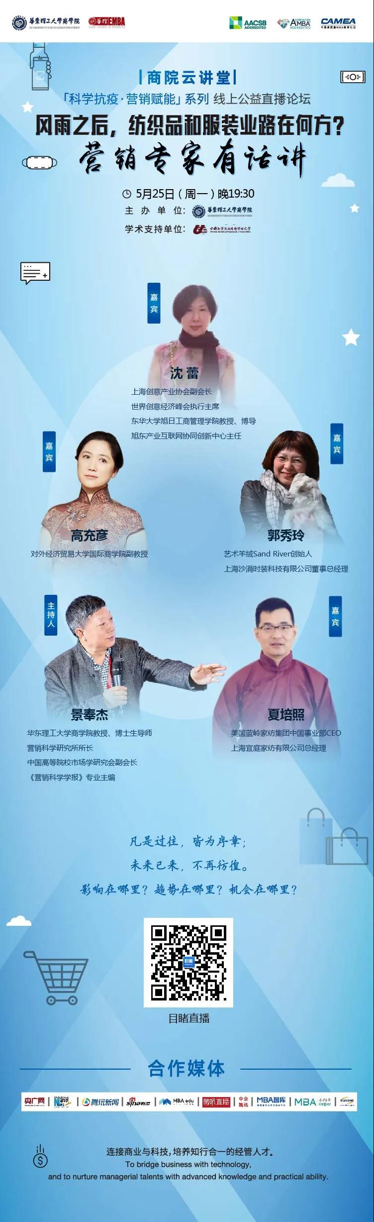 由華東理工大學商學院主辦,中國高等院校市場學研究會提供學術支持的“商院云講堂”【科學抗疫?營銷賦能】系列線上公益直播論壇已于3月16日正式上線!為您解析疫情下的營銷現狀、企業困局、管理疑問。賦能師生、校友,共克時艱,沉著應對挑戰。