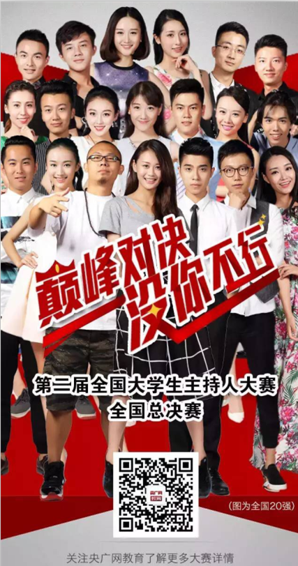 央廣網北京10月18日消息 網羅青春好聲音,開啟人生新頻率,今晚18時, 中央人民廣播電臺央廣網第二屆全國大學生主持人大賽總決賽將于中央人民廣播電臺音樂廳火熱開戰(zhàn),屆時來自十一個地面賽區(qū)成功晉級的二十強選手將爭奪三甲席位。
