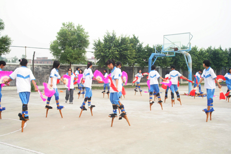 四、體育特色,崇健尚美 多年來,我校不斷探索特色辦學(xué)之路,逐步形成了“崇健尚美”的體育特色。學(xué)校開設(shè)摔跤、拳擊、太極拳、籃球、乒乓球、田徑等特色興趣訓(xùn)練項(xiàng)目,并涌現(xiàn)出一批優(yōu)秀尖子人才。如:江穎、歐陽紹彬同學(xué)獲廣東省傳統(tǒng)武術(shù)項(xiàng)目錦標(biāo)賽一、二等獎(jiǎng),劉永智、黃麗霞同學(xué)獲廣州市摔跤錦標(biāo)賽金、銀牌,每年參加花都區(qū)“巨龍”杯乒乓球、三人籃球賽區(qū)均獲得好成績,是“廣州市摔跤傳統(tǒng)項(xiàng)目學(xué)校”。每年參加廣州市高中階段招生考試,體育科均在花都區(qū)名列前茅,多次榮獲花都區(qū)學(xué)校體育工作先進(jìn)單位。