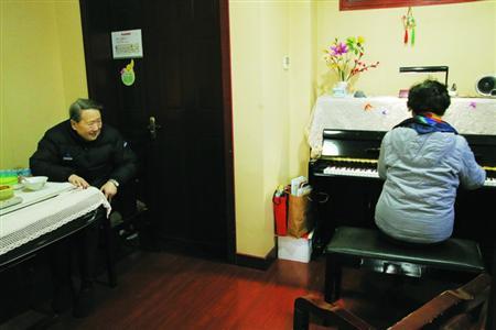 圖說:來頤養(yǎng)院一年半了,譚紹芬閑時喜歡彈鋼琴,王凌青就在旁邊聽著。 來源:解放日報