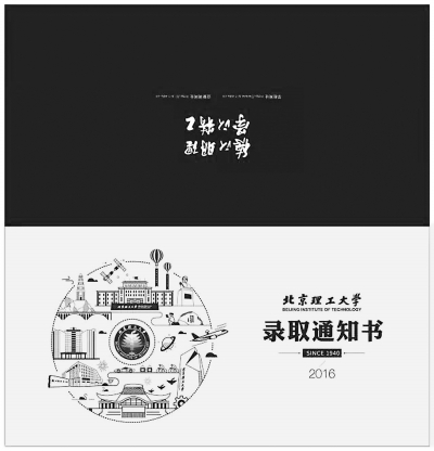 北京工業(yè)大學今年專門請來該校工業(yè)設計專業(yè)學生設計通知書。在通知書封套正面,北工大的科學樓、第二教學樓、圖書館等標志性建筑圍繞;粘蕡A形排列,遠遠看去,猶如盛放的花朵,底紋則是北工大藍顏色的豎條紋,看上去端莊素雅。今年校園開放日期間,北工大還組織了“VIP家長團”,邀請前來參觀的家長為自己的孩子寫封信留在招辦。如果孩子成功考上北工大,這封信將連同錄取通知書一同寄出,成為他考上大學后的第一封家書。