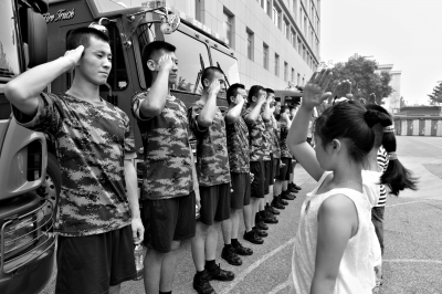 在朝陽區(qū)公安消防支隊(duì)左家莊消防中隊(duì),樂樂在“北京少年兒童消防嘉年華”活動(dòng)中,第一次撥打了火警電話。