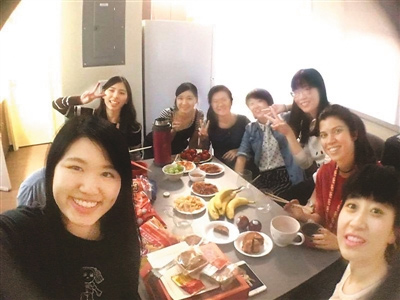 李悅(右三)組織中秋聚會(huì)