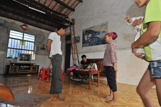 4月11日,海南省萬寧市北大鎮(zhèn)內羅村委會坡麻田村,吳光明和吳志平在沒來上課的學生家做家訪,給學生補課。在這里,學生請假缺課的情況并不罕見。