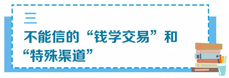 每年總會有一些經過包裝的所謂人脈廣的“能人”“厲害人”在高考期間活躍,他們自稱是高校或省招生辦某領導的熟人,重點針對高考成績不理想或落榜、家庭經濟條件尚可的考生和家長,鼓吹能用錢買到“校長指標”“內部指標”“計劃外指標”“點招指標”等,或可以通過自主招生等特殊渠道滿足考生“低分高錄”,讓考生錄取到心儀的院校、熱門專業等,謀取不法利益。