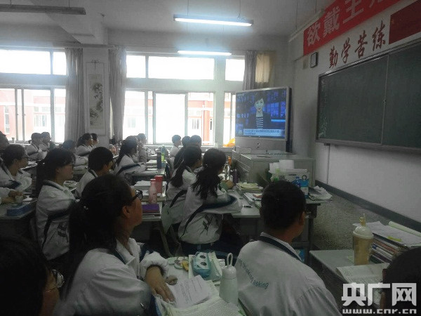 六盤山高中的學生們每天收看《新聞聯播》 攝/記者 王啟慧