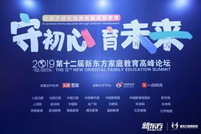 2019 年 11 月 16 日,第十二屆東方家庭教育高峰論壇在北京隆重召開。本屆論壇由新東方教育科技集團(tuán)主辦,新東方家庭教育研究與指導(dǎo)中心承辦,中國(guó)家庭教育學(xué)會(huì)作為學(xué)術(shù)支持單位。論壇匯聚了千余名教育主管部門領(lǐng)導(dǎo)、知名專家學(xué)者、各界社會(huì)名人,以及優(yōu)秀的教育工作者、家庭教育工作者和家長(zhǎng)代表。