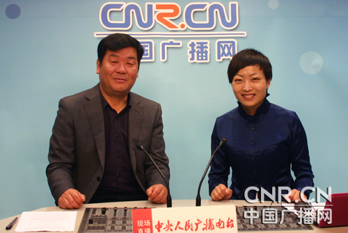 北京交通大學招生就業處處長王化深(左)中國廣播網教育頻道記者徐建娟(右)