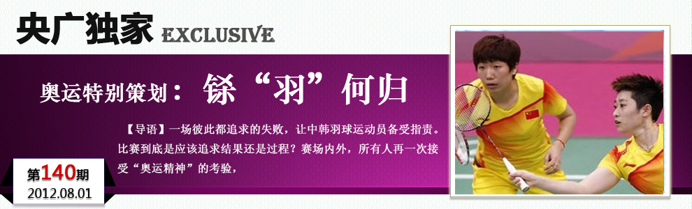* 中國羽毛球頭號女雙組合“讓球”敗給韓國 現場遭噓 在31日的倫敦奧運會羽毛球女雙小組賽A組最后一場比賽中,世界排名第一的中國組合于洋/王曉理以14:21和11:21爆冷不敵韓國組合鄭景銀/金荷娜,由于雙方在場上失誤頻頻,擊球不是出界就是下網,比賽時溫布利體育館內噓聲四起。現場的觀眾則很不理解:“雙方在國際水平以下,簡直是訓練的水平,這對其他選手是不公平的。中國是體育大國,應該給其他隊伍做個榜樣,在賽場上應該代表中國的形象。” |