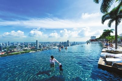 濱海灣金沙樓頂?shù)臒o邊際泳池。