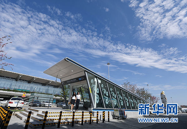 9月6日,兩名乘客從成都地鐵10號線雙流機場T1航站樓站走出。當日,成都地鐵10號線一期正式開通試運營。10號線一期工程全長約10.9公里,均為地下線,共設車站6座。這是成都地鐵首條機場專線。新華社記者 江宏景攝