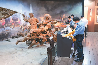 5月3日,游客在安徽合肥的渡江戰役紀念館參觀。