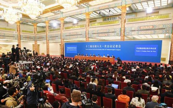 十三屆全國人大一次會議上午11時在人民大會堂新聞發布廳舉行新聞發布會,由大會發言人就大會議程和人大工作相關問題回答中外記者提問。