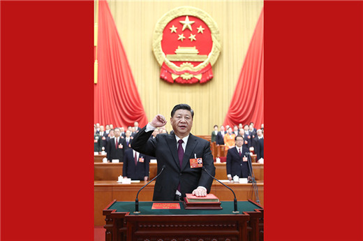 3月19日上午,第十三屆全國人民代表大會第一次會議在人民大會堂舉行第七次全體會議。在各項議程結束之后,十三屆全國人大一次會議舉行憲法宣誓儀式。